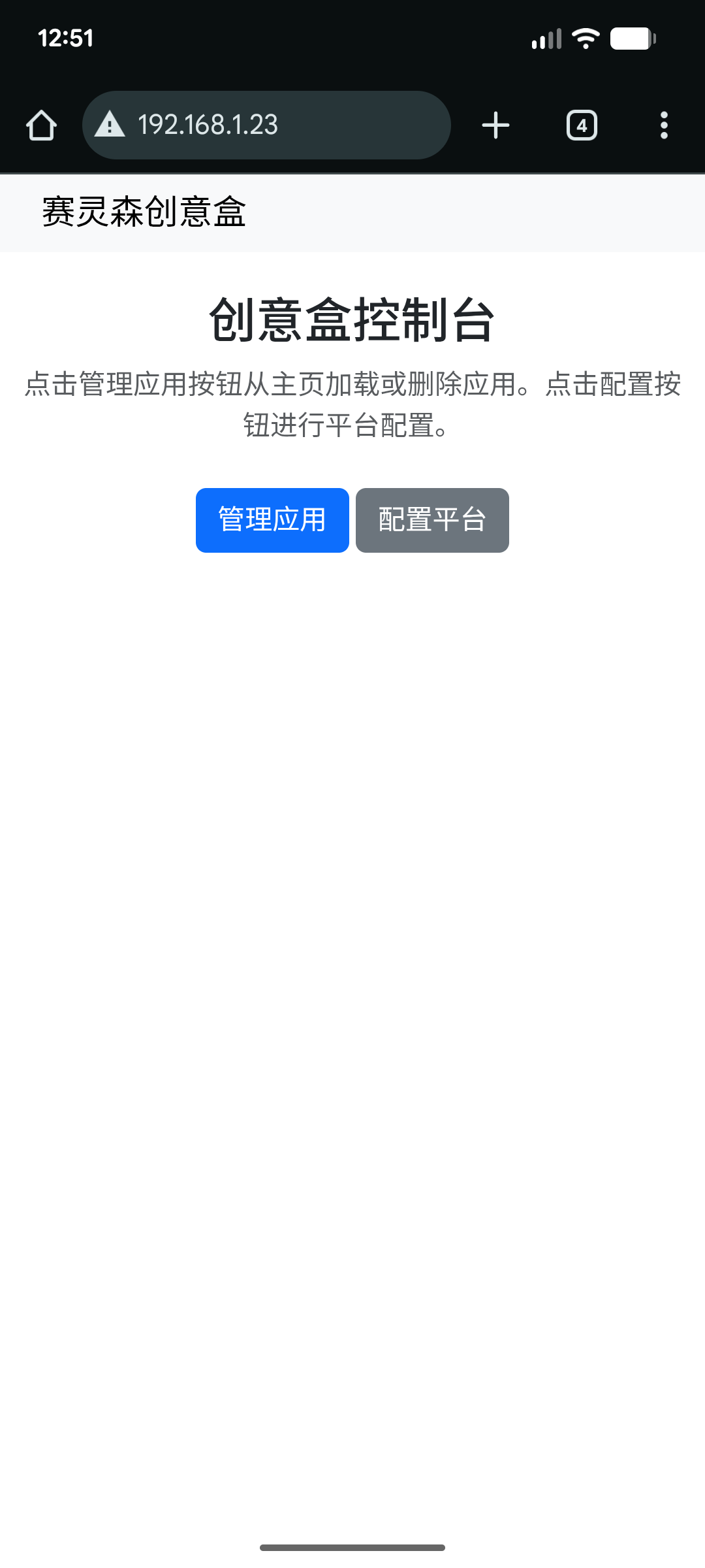 | 创意盒控制台 | 加载应用 | 进入应用并选择引脚编号 | 输入发送内容并点击发送数据 |